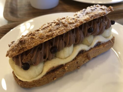 松本市のビストロヒカリヤのチョコとバナナのエクレア 松本・安曇野地方はケーキやパンがものすご〜くおいしいと個人的には自信を持っている。 それは水がおいしいからだと思う。ここで特に松本・安曇野地方を名指ししたのは自分の生活圏だったからなんだけ…