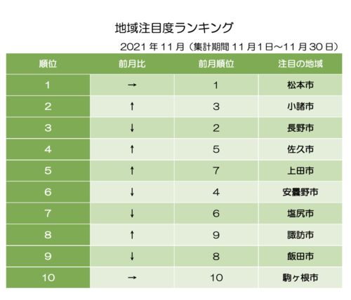 こんばんは、茶々丸です。 先日、「長野で最も注目されている街ランキング」が発表されたというニュースがありました。 news.yahoo.co.jp 「市町村注目度ランキング」はみんなでつくる地域応援サイト「生活ガイド.com」が毎月発表するものです。このランキン…