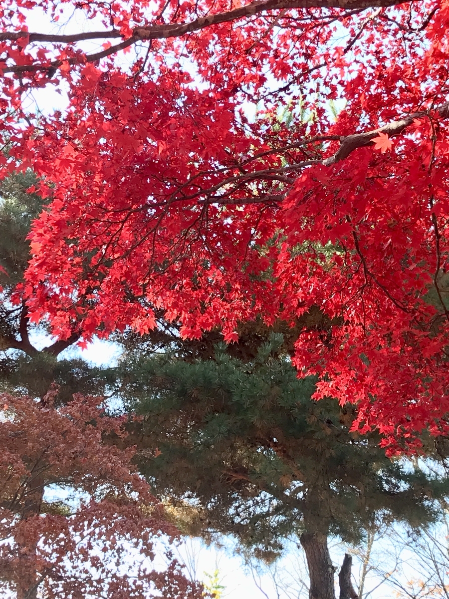 へたくそな写真で申し訳ないですが、カメラロールが真っ赤になるほど、紅葉の写真を撮りましたのでお見せしますね。