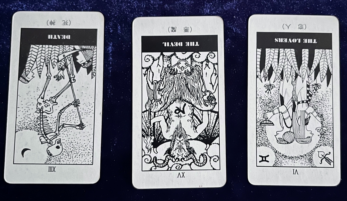 背中合わせの恋人同士は、二者択一の問題をそれとなく暗喩しているカードです。